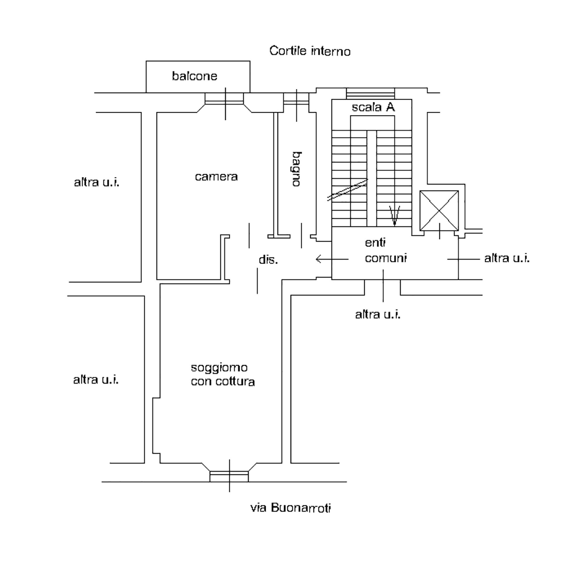Via Buonarroti – MM Wagner.In a 1950s building with half-day concierge service and elevator, a bright 45 sqm apartment with double exposure composed by an entrance hall, hallway, living room with open kitchen, double bedroom with balcony, and bathroom with window. The property is in excellent internal condition and is rented completely unfurnished, as shown in the photos. Central heating and stoneware floors. Price € 1,200.00 per month + condo fees. Energy rating G – 175 kWh/sqmy.