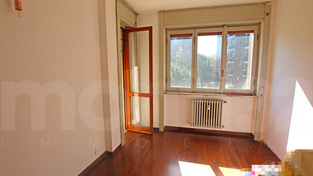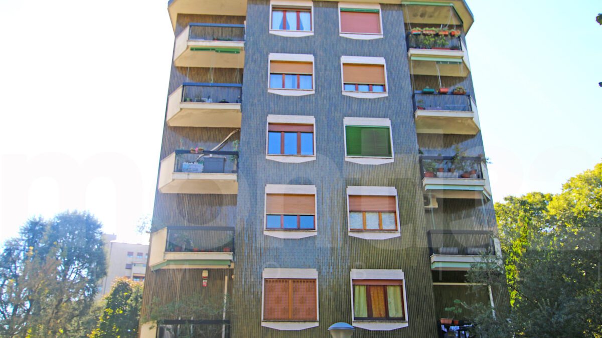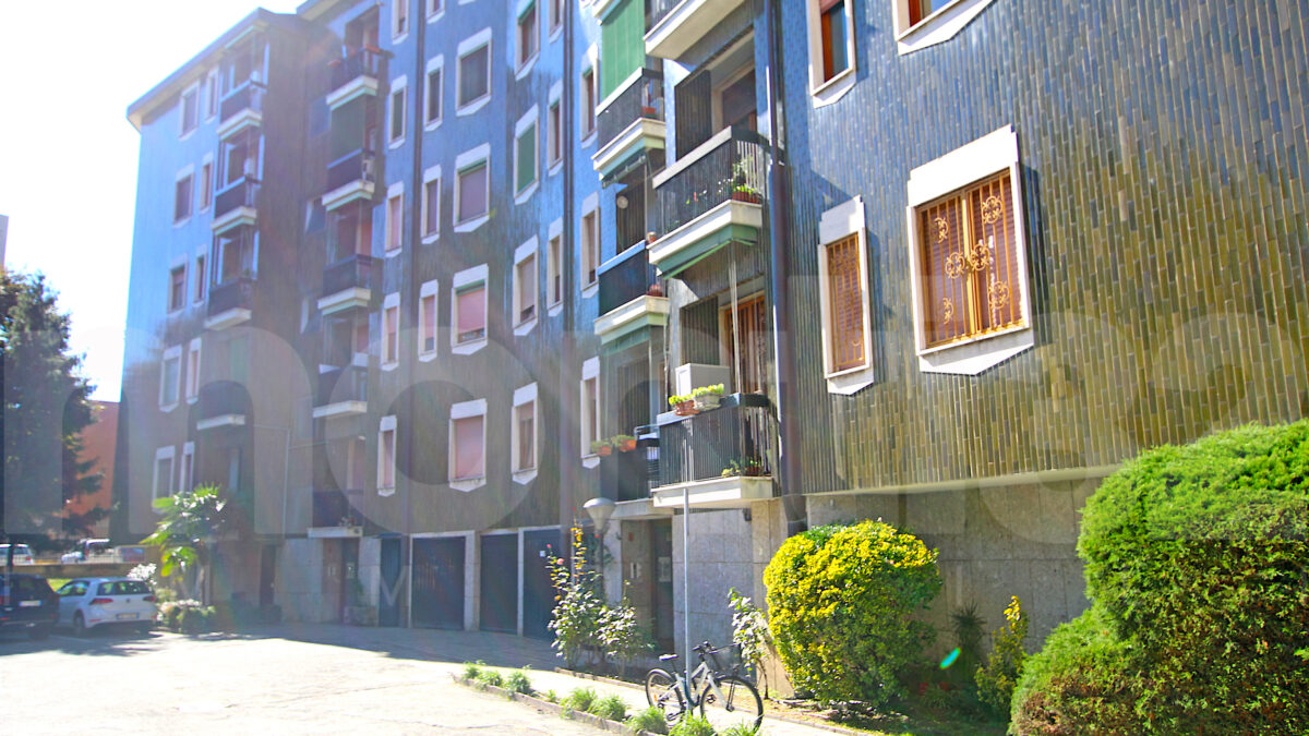 Via Privata Trilussa – Vialba. In a quiet residential area, within a 1960s building featuring a large communal garden, elevator, and full-day concierge service, we offer a bright and quiet three-room apartment of 105 sqm with dual internal exposure. The property comprises: entrance hall, living room with balcony, separate eat-in kitchen with a second balcony, two bedrooms, bathroom, and storage room.