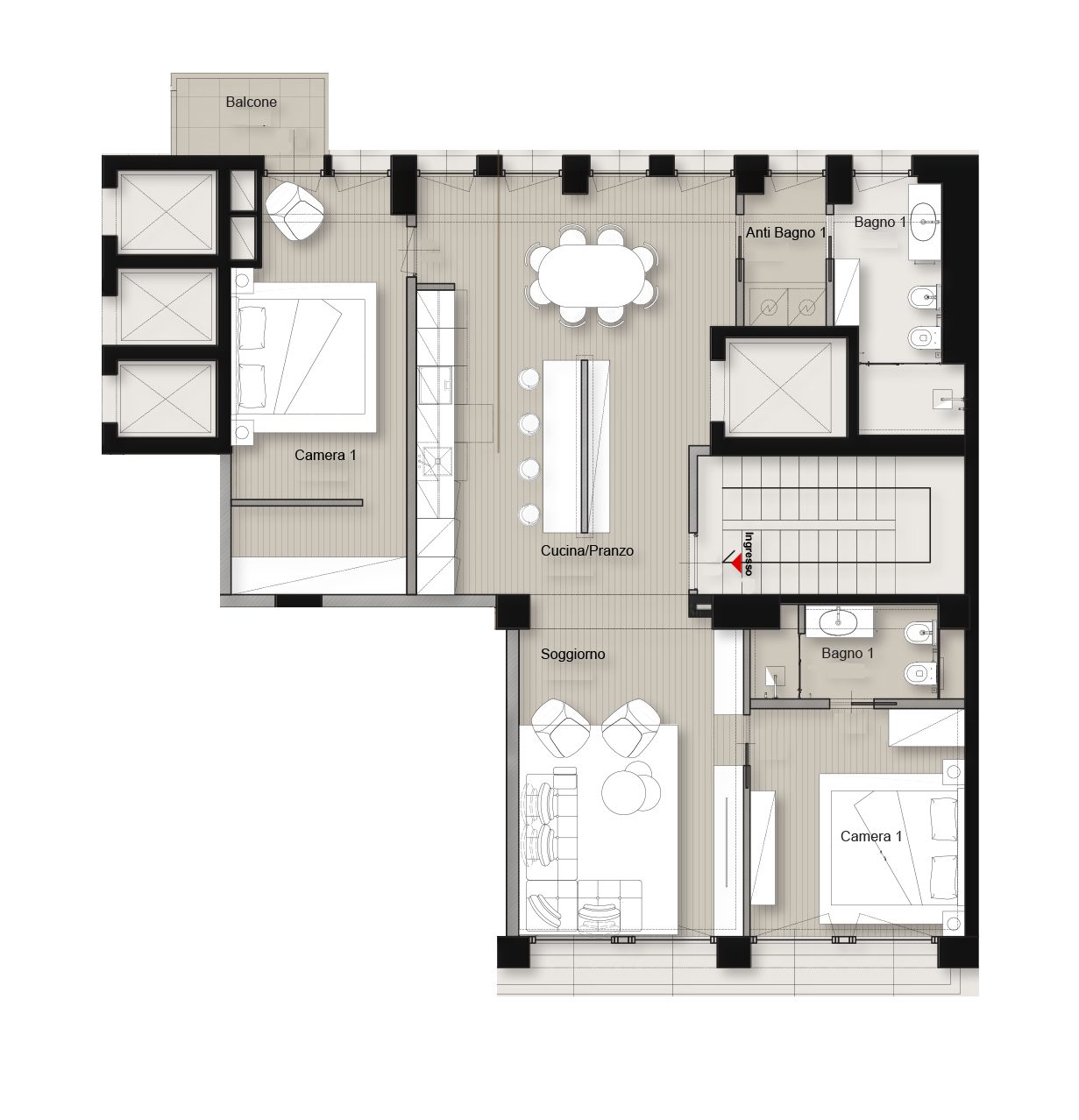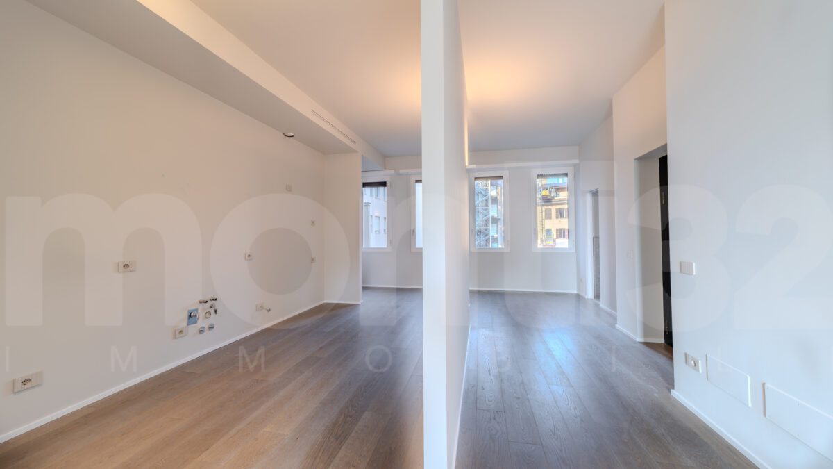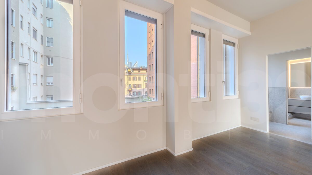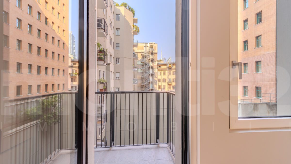 Piazza della Repubblica. Located in one of the most sought-after residential areas of the city, just a short walk from the historic center and the modern skyline of Porta Nuova, we offer for sale a refined three-room apartment of 116 sqm, situated in an elegant 1960s building with full-day concierge service and private elevator with direct access into the apartment. The entrance opens onto a bright and spacious living room, enhanced by large floor-to-ceiling windows, leading into kitchen with adjacent dining area, cozy and filled with natural light. The sleeping area includes two bedrooms, one of which is a master bedroom with private balcony and walk-in wardrobe, along with two elegantly finished bathrooms and a convenient laundry area. The apartment has undergone a complete renovation using high-quality materials and is move-in ready. Every detail has been carefully designed to ensure maximum comfort, featuring: centralized ceiling heating, ducted air conditioning, security door, oak parquet flooring, contemporary design bathrooms. Price € 1,600,000. Energy rating C – 70.65 kWh/sqm per year