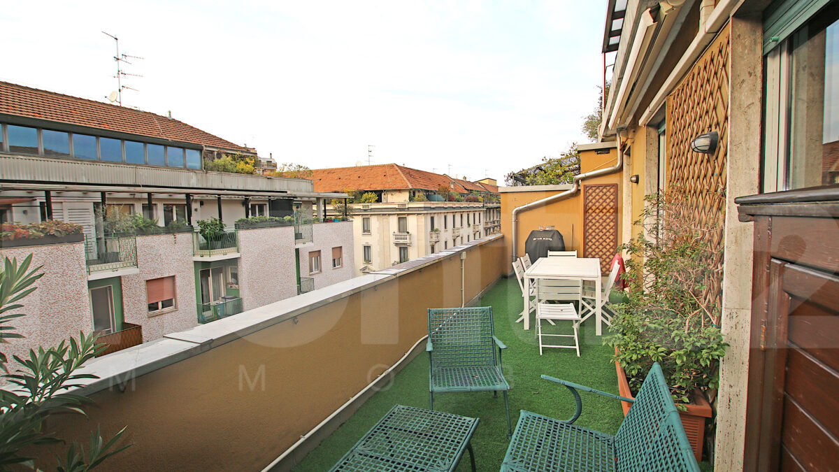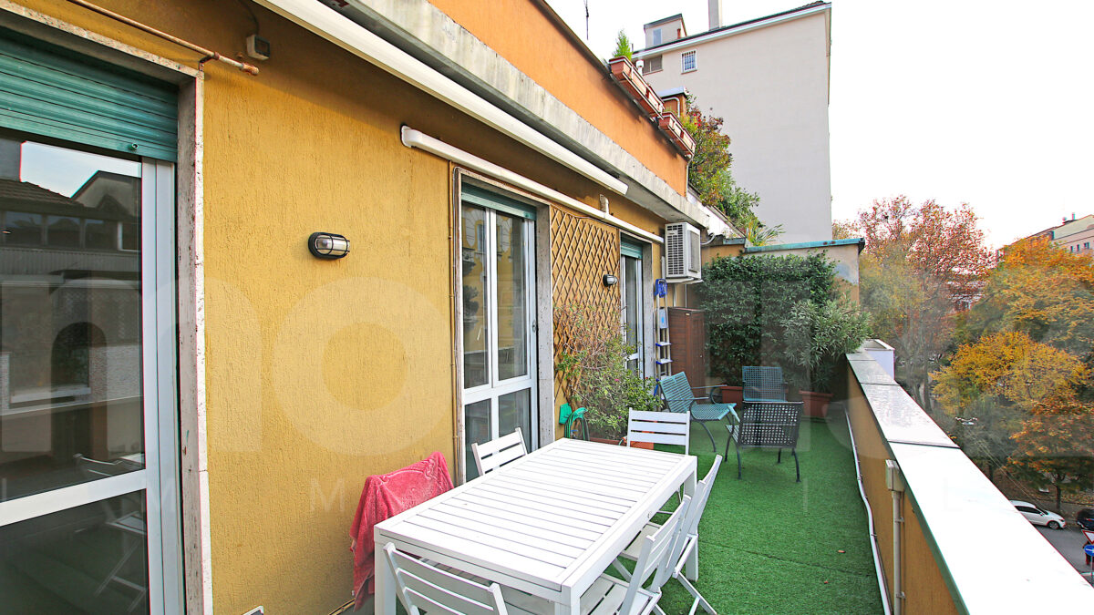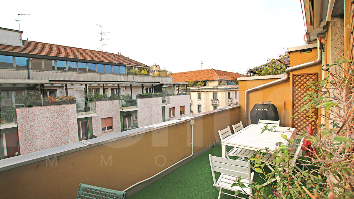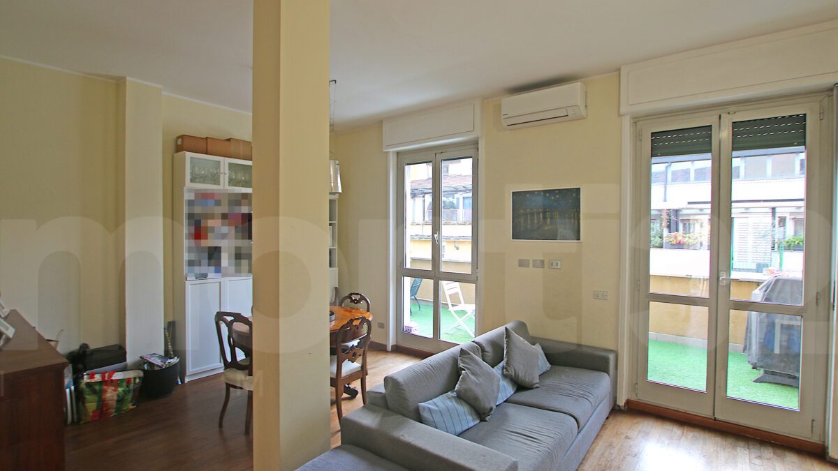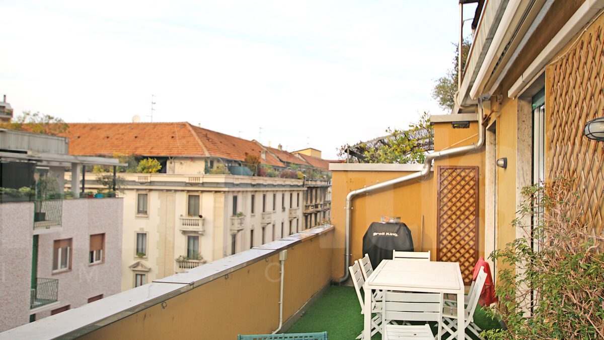 Via Giasone del Maino – Via Sardegna. In the heart of one of the city’s most sought-after areas, on a high floor of a 1950s building with lift, bright 110 sqm apartment featuring a terrace and dual exposure, all in excellent internal condition. The entrance opens onto a spacious living room with dining area and direct access to the terrace, which floods the entire living space with natural light. The eat-in kitchen, equipped with a balcony, ensures practicality and comfort. The sleeping area includes two double bedrooms and two bathrooms. It has also been formally approved to carry out the refurbishment works on the inner façade. The works will begin in the spring of 2026 and will be fully financed by the current owner. Additional features include: central heating, air conditioning, alarm system, reinforced door, a cellar and the possibility of purchasing a single garage within the complex. Price: € 850,000. Energy class: D – 163,32 kWh/mqa