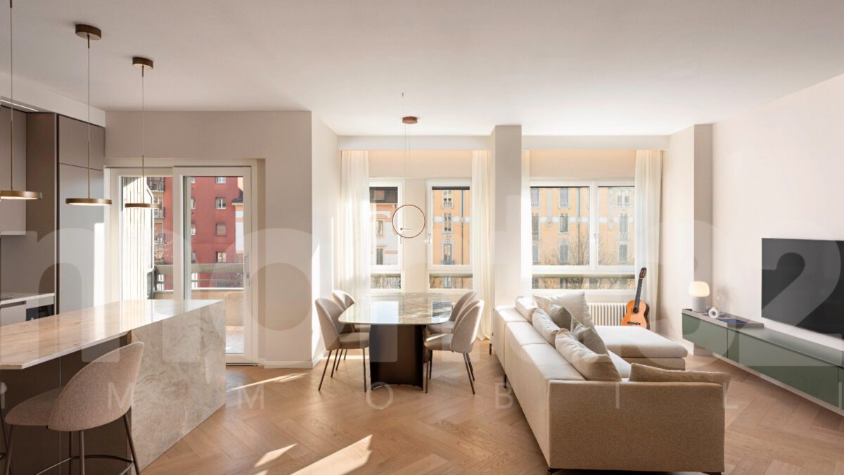 Via Jacopo dal Verme – Isola.In una delle zone più vivaci e ricercate di Milano, con ingresso dalla silenziosa Via Jacopo dal Verme e vista su piazzale Archinto, proponiamo in vendita un’elegante residenza di 130 mq, situata al piano alto di un signorile stabile anni 60, dotato di servizio di portineria per l’intera giornata e doppio ascensore. L’abitazione, luminosa e silenziosa grazie alla doppia esposizione est-ovest, è stata completamente e ristrutturata a nuovo con l’utilizzo di materiali e finiture di alto pregio. Gli ambienti, arredati con gusto contemporaneo e attenzione ai dettagli, vengono venduti chiavi in mano, pronti per essere abitati. L’ingresso si apre su un doppio soggiorno con ampio balcone affacciato sul curato verde di Piazzale Archinto, cucina a vista con piano, schienale e isola in marmo e bagno di cortesia. La zona notte comprende una spaziosa camera padronale con balcone, cabina armadio e bagno en suite con vasca e doccia, oltre a una seconda camera da letto matrimoniale con bagno privato. Completano la proprietà una funzionale zona lavanderia/ripostiglio, una cantina, un solaio e un box auto all’interno del contesto, ideali per garantire maggiore comfort e praticità. Dotazioni moderne includono riscaldamento centralizzato con termosifoni, impianto di climatizzazione canalizzato, predisposizione sistema d’allarme e domotica, porta blindata, tapparelle motorizzate, infissi in pvc triplo vetro taglio acustico. Pavimentazioni in parquet, essenza nobile a spina di pesce, bagni in ceramica Porcelanosa e Florim. Prezzo € 1.390.000 Classe energetica B – 121,11 kWh/mqa