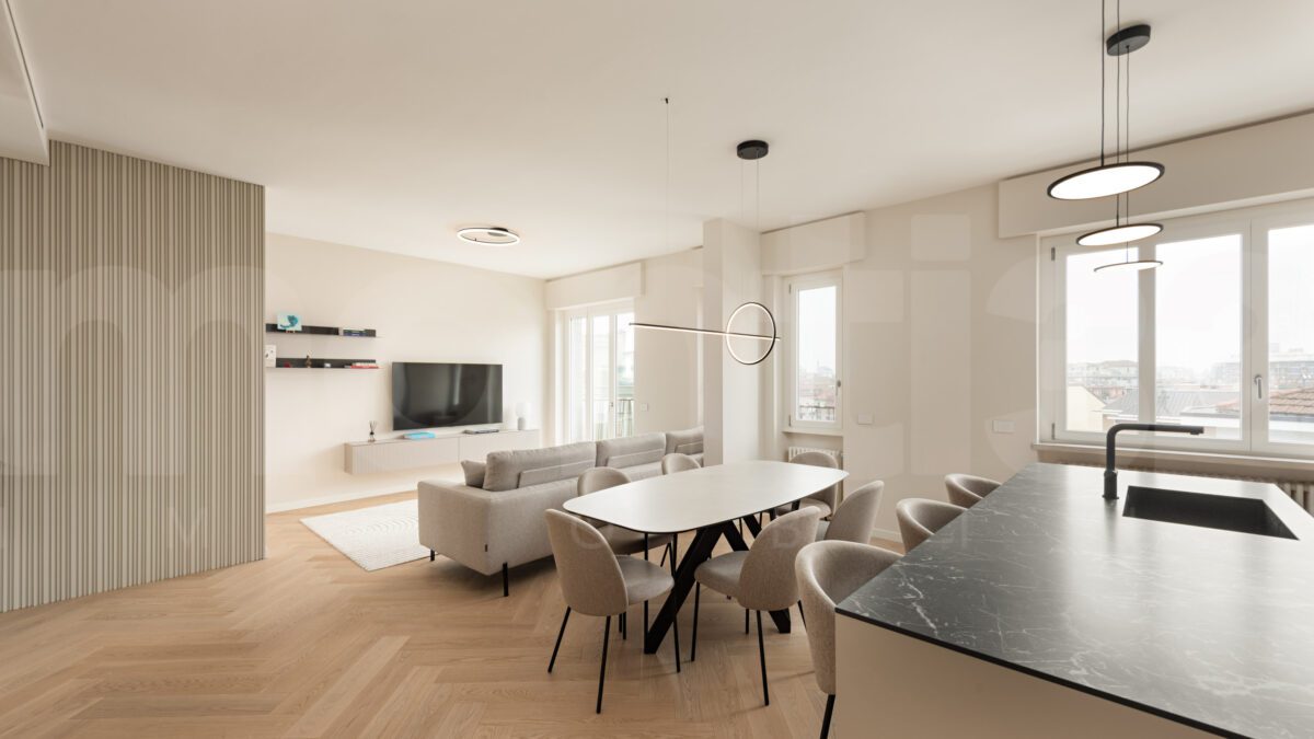 Piazzale Segrino – Isola. Nel cuore di uno dei quartieri più vivaci e ricercati di Milano, dove il fascino popolare della tradizione si fonde con l’architettura contemporanea, proponiamo un luminoso appartamento di 145 mq al piano alto di uno stabile anni 60, dotato di ascensore e servizio di portineria attivo tutto il giorno. L’abitazione, impreziosita dalla tripla esposizione e da ampie superfici vetrate, si apre su un arioso living con moderna cucina a vista. La zona notte comprende tre camere da letto e tre bagni; sono inoltre presenti due balconi e una pratica lavanderia. Completano la proprietà una cantina e la possibilità di acquistare un box all’interno del condominio. L’immobile è stato completamente ristrutturato a nuovo, mai abitato e arredato con materiali di pregio e soluzioni di design. Dotato di riscaldamento centralizzato, aria condizionata canalizzata e ventilazione meccanica controllata (VMC), presenta eleganti pavimentazioni in parquet. Un appartamento pronto da vivere, ideale per chi cerca comfort, stile e una posizione strategica nel cuore dell’Isola. Prezzo € 1.330.000 Certificazione energetica C – 123,06 kWh/mqa